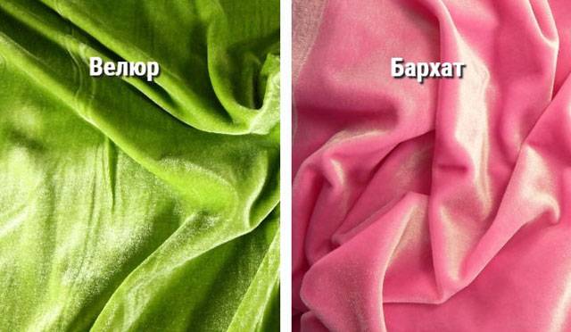 Главное отличие велюра от бархата заключается в том, что первый тип материала изготавливается чаще всего из шерсти или хлопка, бархат – из аналогичных материалов, а также из шелка.