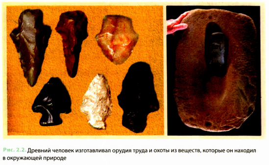 В древности человек для изготовления необходимых предметов искал пригодные вещества в природе (рис. 2.2): для наконечника стрелы — твердый камешек, для теплой одежды — эластичные меховые шкуры и т. п.
