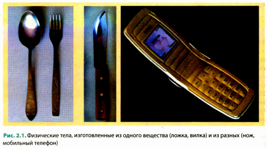 - Любые предметы вокруг нас называют физическими телами, а материал, из которого они состоят,— веществом. Физическое тело может состоять из одного или нескольких веществ.
