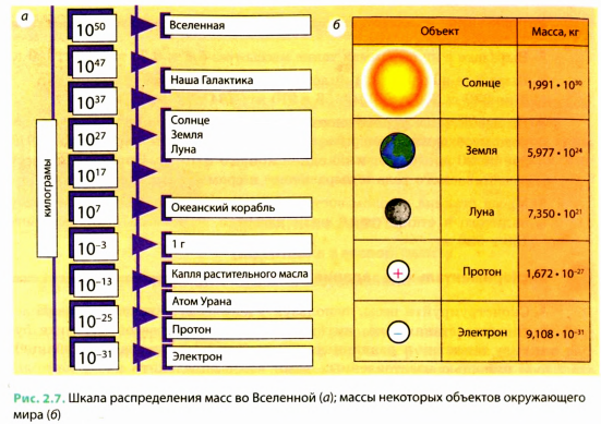 Однако современная физика владеет также и самыми современными способами измерений, которые позволяют с большой точностью определять и массы микрочастиц вещества, и массы гигантских объектов (рис. 2.7).
