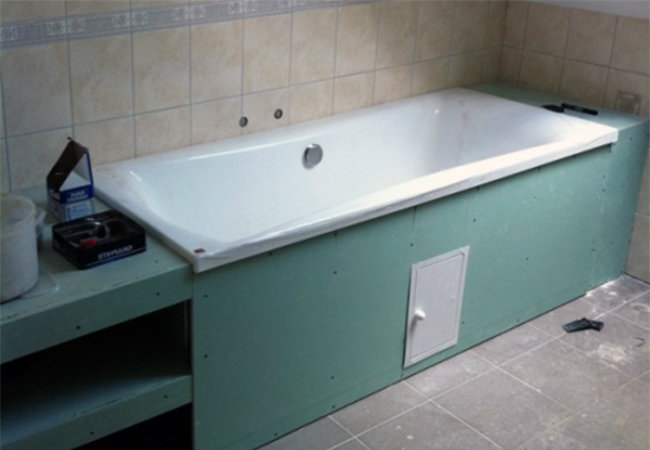 Для ванной, с ее повышенной влажностью, нужен или влагостойкий ГКЛ или гипсоволокно. Здесь на выбор хозяев: есть деньги — покупается ГВЛ. Бюджет ограничен — гипрок. Арки в стенах можно сделать только из листов гипсокартона.