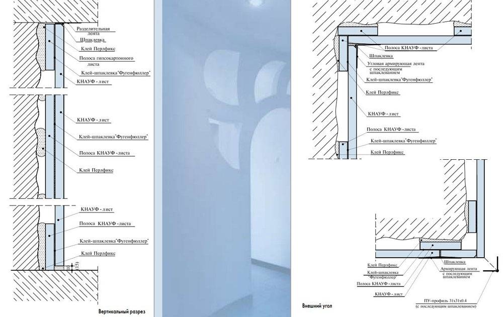 Их параметры значительно отличаются друг от друга. Стеновой используют для облицовки поверхности стены. Потолочный подходит для монтажа простых и сложных конструкций на потолке. Из арочного изготавливают арки и другие элементы декора.
