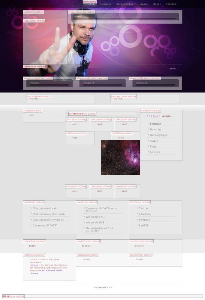 Что можно сказать о Joomla? Это отличная CMS, одно из главных её достоинств для меня — это модульный конструктор. Вы можете увидеть все модульные позиции Joomla для меню, слайдера, футера, сайдбаров, основной области, хлебных крошек, поиска и многого другого, просто дописав в адресной строке после адреса вашего сайта этот так называемый код: /?tp=1. Увидеть это наглядно можно на одном из моих сайтов, для создания которого я выбрал Joomla: