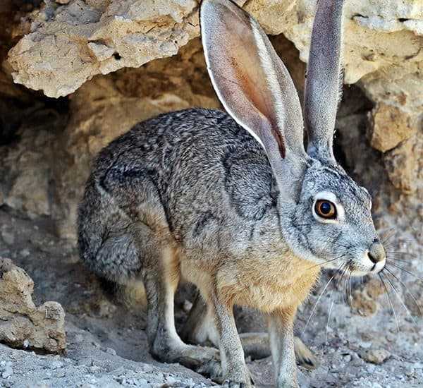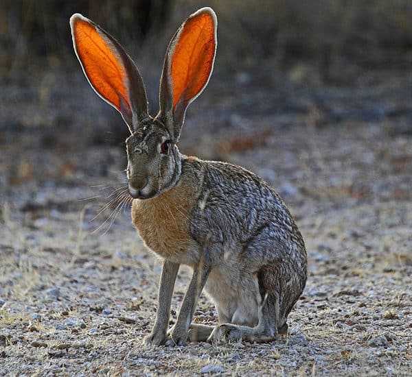 - У антилоповых зайцев уши (длина 16, 2 см) голые, белый мех есть только на кончике и по краю. В период жары от меха на теле отражается солнечный свет – это спасает от перегрева, а в холодное время необычное животное уменьшает приток крови к ушам, что снижает отдачу тепла.