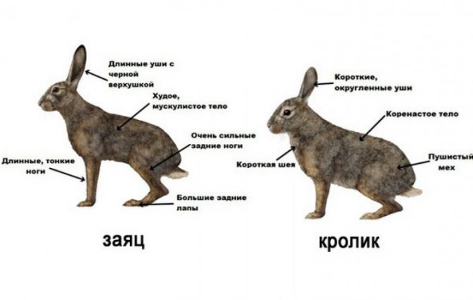 - для кролика нехарактерна смена окраски шубки, а заяц, как известно, с приходом зимы облачается в белоснежную шерстку, что позволяет ему прятаться от хищников;
