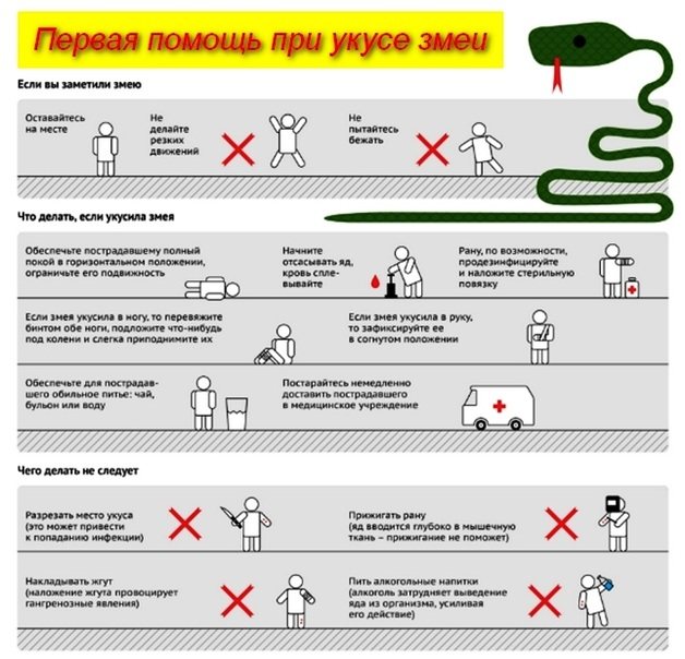Однако, укус змеи – это результат неосторожности человека или самозащита животного. При защите змея принимает позу угрозы и делает бросок головы в сторону человека, иногда кусает и даже дважды. Какие меры необходимо предпринять, если вас укусила змея?