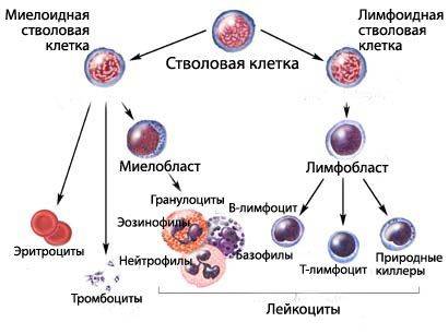 Все названия такого злокачественного заболевания берут начало от клеточного типа крови, а слово «бластный» свидетельствует о незрелости клеток-предшественников, являющихся обычными клетками костного мозга.
