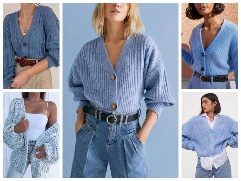 Не получится затеряться в толпе, если выбрать голубой или бирюзовый кардиган, особенно выбирая сочетания с желтыми и коралловыми вещами. Если нужен более спокойный образ, то их комбинируют с белым. Зеленый носят с одеждой в пастельных тонах.