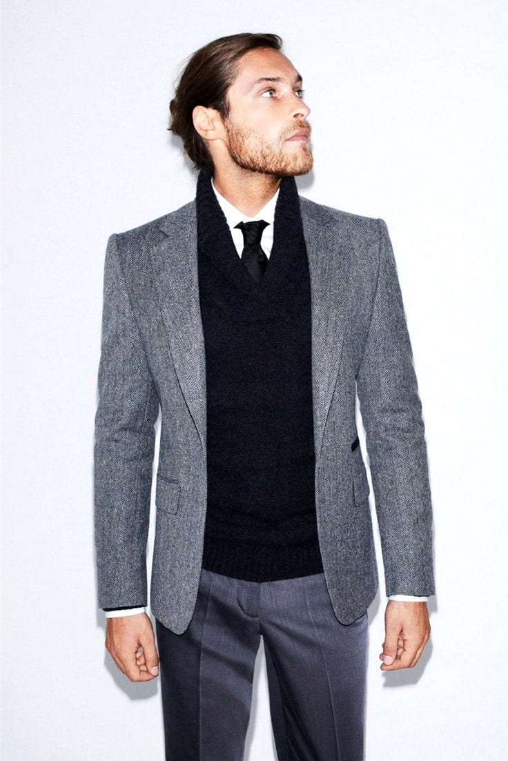 В мужском гардеробе качественная толстовка из натуральных материалов служит базой. Ее можно носить под костюм в качестве сорочки. Расслабленный наряд в стиле «городской шик» сложится при наличии темной толстовки, пиджака и узких брюк.
