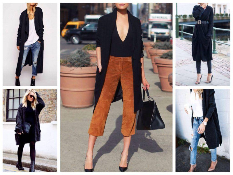Вряд ли возникнет проблема, с чем носить черный кардиган. Ведь этот цвет универсальный, его смело можно комбинировать с другими. Это же касается и пальто