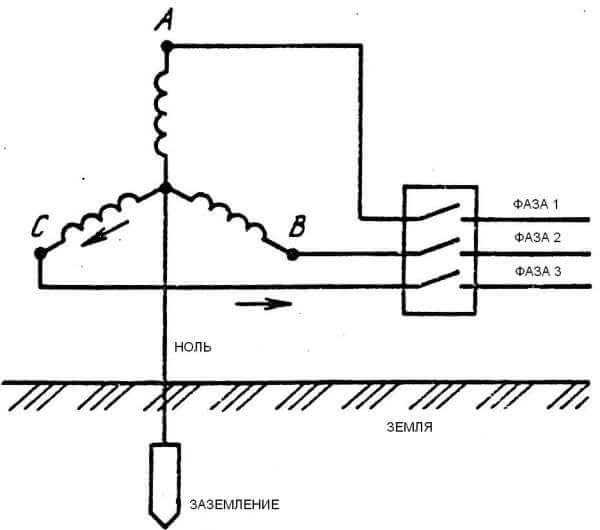 Если во время работы отдельно взятой пары фаз нагрузка на них не будет одинаковой, в точке схождения непременно возникнет положительный электрический потенциал. То есть, если при обрыве заземляющего контура человек возьмётся за корпус подъездного щитка, его ударит током. Сила такого удара будет зависеть от степени асимметрии нагрузок.