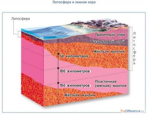 Таким образом, вести разговор непосредственно про отличие земной коры от литосферы несколько нелогично, поскольку земная кора – одна из составляющих литосферы. Однако в некоторых случаях объектом наблюдений является именно земная кора, а в других – более обширная зона, включающая также слой мантии.