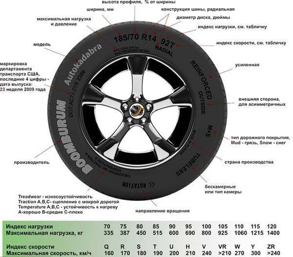 Расшифровка маркировки шин: зимние, летные, всесезонные