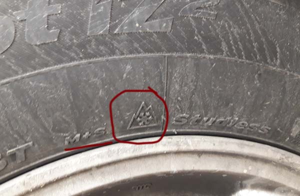 - Зимняя резина – на ней нанесен индекс «M+S», также на шине может быть изображение снежинки или слово «Winter»;