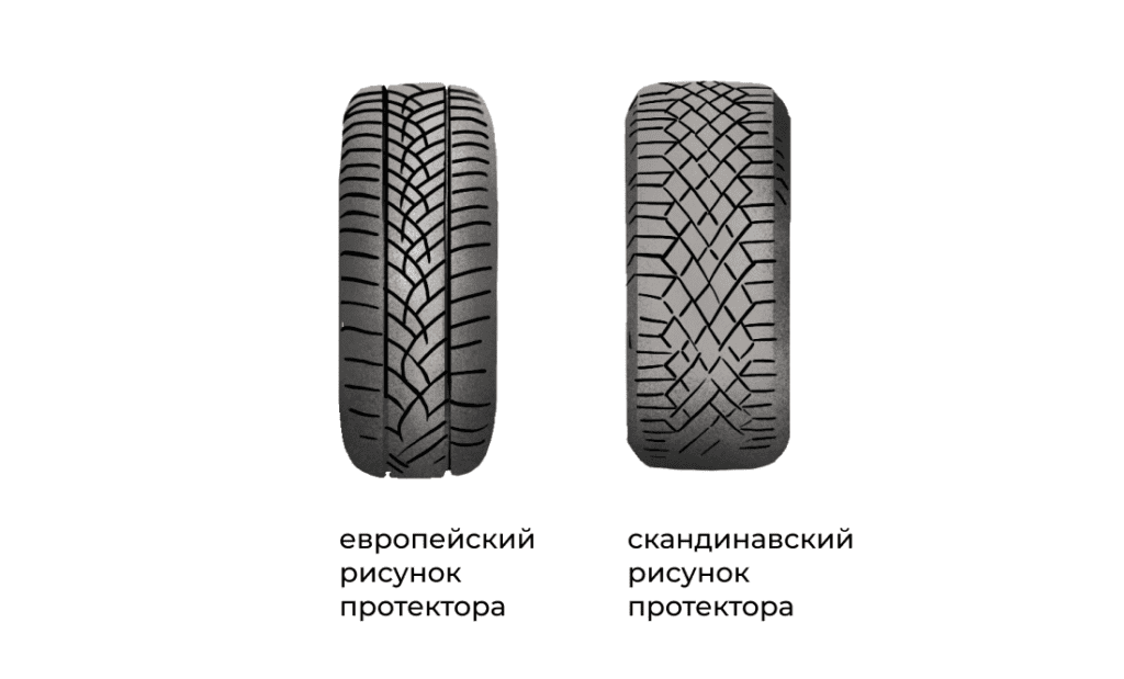 Европейский — состоит из сети каналов и множества ламелей (разрезов по бокам). Очень похожи на летние дождевые шины и больше годятся для расчищенных дорог.