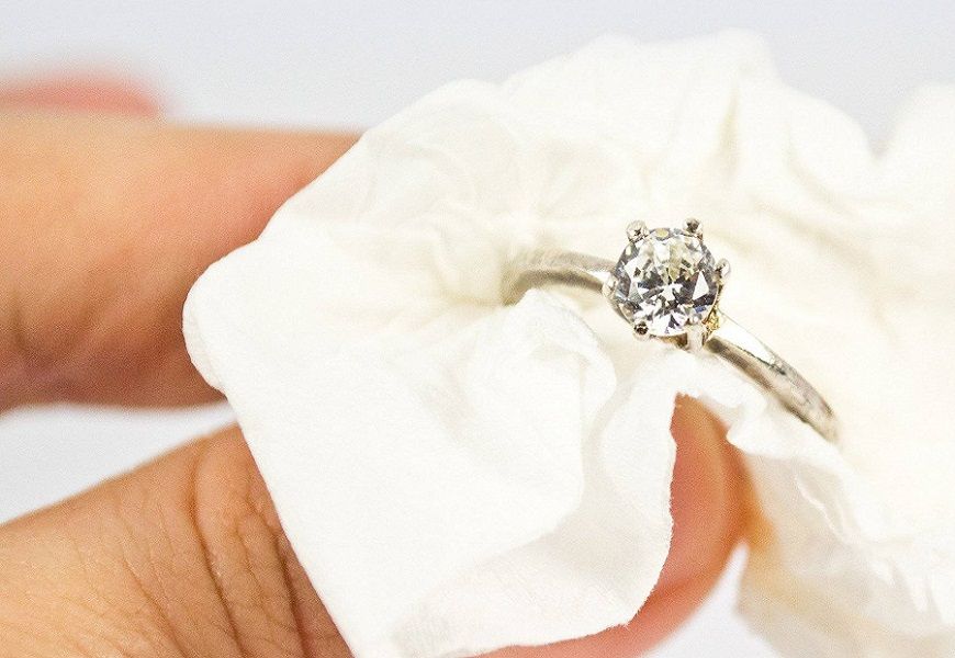 - Способ подойдет для изделий слабой степени загрязнения. Украшение потребуется протереть 9% уксусом, оставить на 20 минут, затем промыть проточной водой. После просушки изделие можно отполировать тканью из замши.