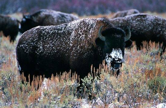 В летнее время шуба великана становится реже, а зимой уплотняется. Благодаря густому подшерстку, бизоны с легкостью переносят даже крепкие морозы и не боятся холодных ветров и снежных осадков.