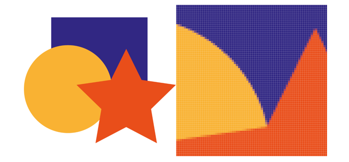 Растровое изображение, как мозаика, складывается из множества маленьких ячеек — пикселей, где каждый пиксель содержит информацию о цвете. Определить растровое изображение можно, увеличив его масштаб: на определённом этапе станет заметно множество маленьких квадратов — это и есть пиксели.