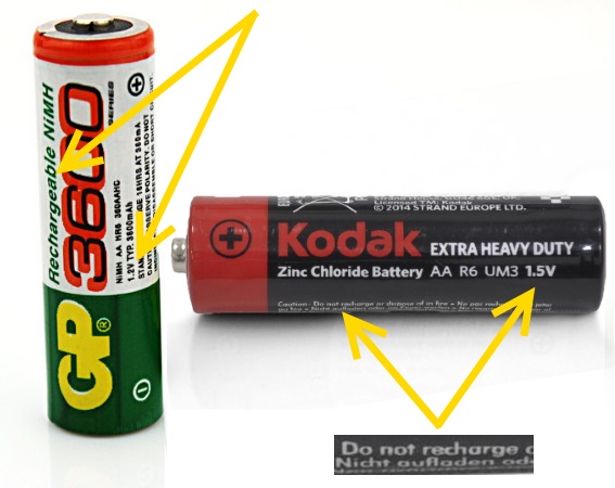 Различить эти элементы питания можно по информации от производителя на корпусе. Для этого нужно знать английский язык или разбираться в электрических параметрах.
