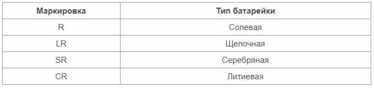 Маркировка батареек по типу.