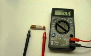 Проверка напряжения батарейки мультиметром.