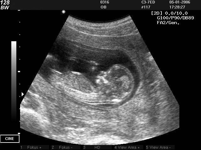 Малыш уже не просто «головастик», а человечек со всеми органами. ВДМ – 14-18 см. Матку на 16-й неделе доктор уже прощупывает на участке между пупком и лобком.