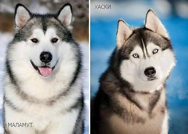 Отличия хаски от маламута на фото. Хаски (слева) и маламут (справа)
