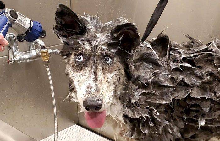 Их тело покрыто густой и пушистой шерстью серо-белого цвета. Также для этих собак характерны карие глаза.