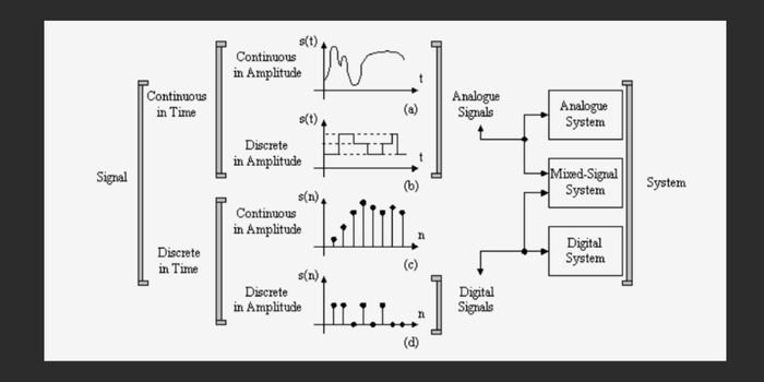 Вы можете посмотреть на рисунок ниже, чтобы увидеть разницу дискретного времени и дискретной амплитуды на аналоговых и цифровых входах:
