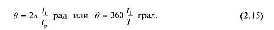 Напряжение v2 на графике рис. 2.11 пересекает ноль в момент времени tx после того, как ноль пересек график напряжения v. Следовательно, фаза между v2 и v; определяется из пропорции: