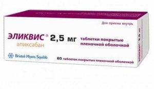 - Апиксабан (Эликвис). Этот разжижитель используется при тромбозах вен, а также эмболии легочной артерии. После недельного лечения начальной дозировкой препарат нужно пить в поддерживающих количествах пожизненно.