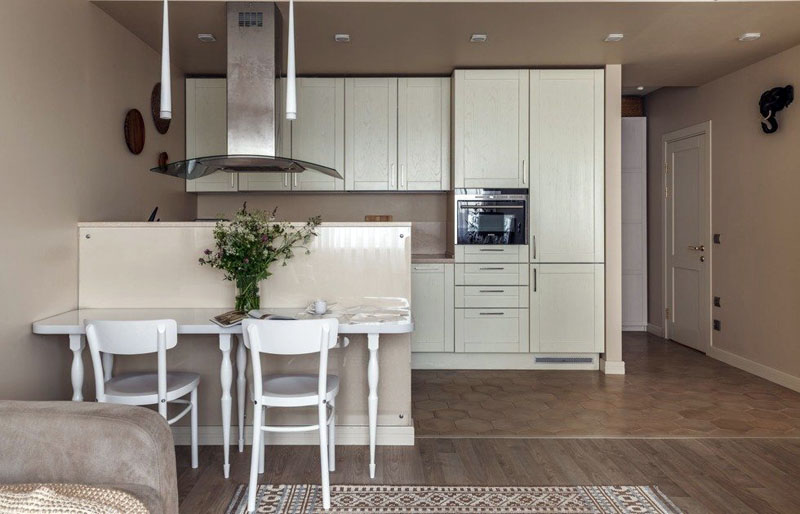 Студия, но за счёт грамотного распределения пространства есть разграниченные зона отдыха и приёма гостей