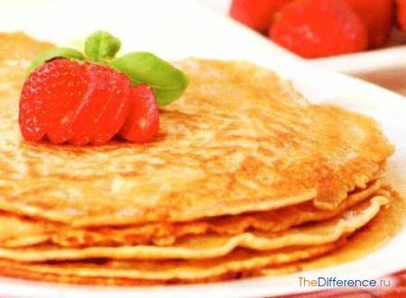 Основное отличие состоит в том, что блины выпекаются на дрожжах, а в тесто для блинчиков дрожжи не добавляются, за счет чего изделия получаются очень тоненькими. Поэтому блинчики – менее калорийное блюдо, чем блины, которые принято подавать на стол с маслом, сметаной, красной и черной икрой, медом и другими сытными добавками. Блинчиками, плоскими и почти прозрачными, обычно лакомятся на десерт, поэтому их часто посыпают сверху корицей и сахарной пудрой с ванилью. С ними отлично сочетаются сладкие соусы, свежие ягоды, мороженое.