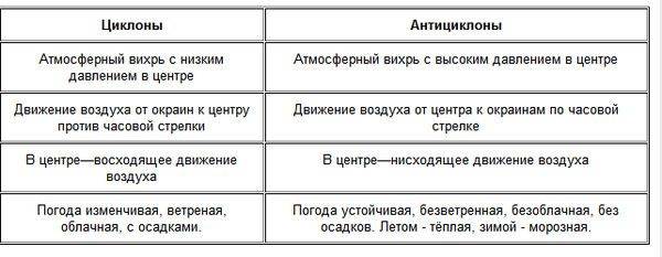 1. Чем циклон отличается от антициклона?