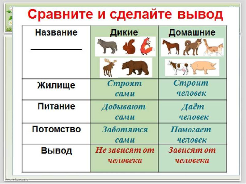 – А чем эти виды отличаются друг от друга? (дикие живут в лесу, а домашние рядом с человеком)
