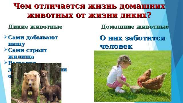 Домашние животные любят людей. Они привыкли к этому с детства. Дикие животные боятся людей и готовы защищаться при виде двуногих посетителей.