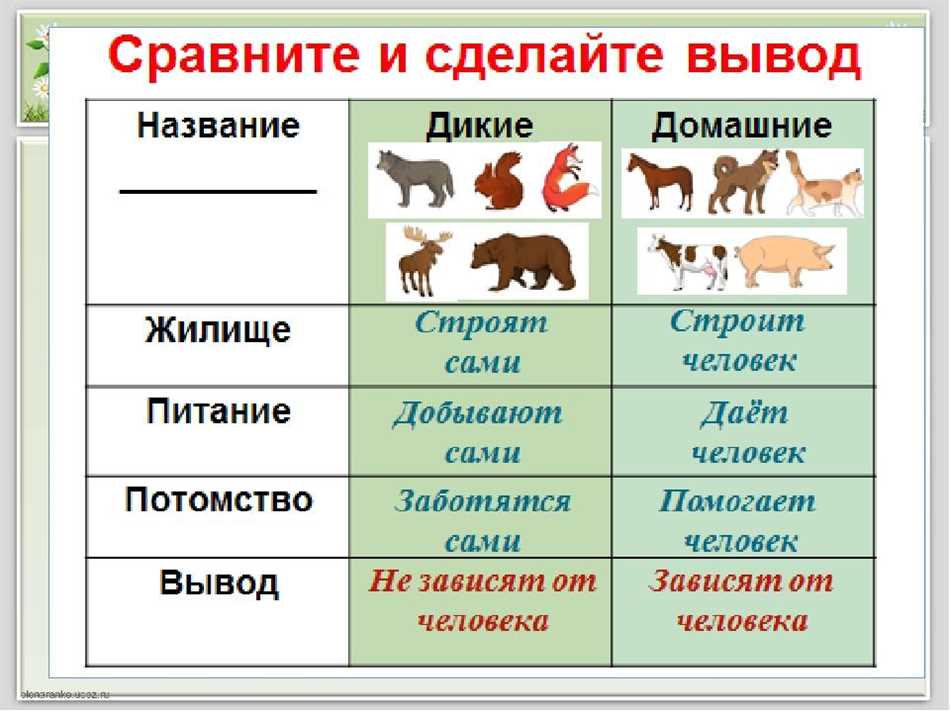 Таким образом, взаимодействие домашних и диких животных с людьми сильно отличается. Домашние животные, такие как собаки и кошки, развили способность общаться с людьми и полностью зависят от них. Дикие животные, с другой стороны, сохраняют свою независимость и основывают свое существование на природных условиях.