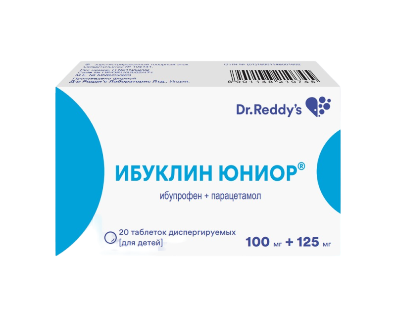 - Ибуклин-Юниор (растворимые таблетки для детей), 100 мг+125 мг, 20 шт. – 105 руб.