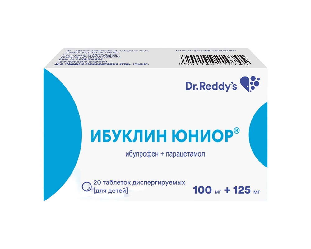 - Ибуклин-Юниор (растворимые таблетки для детей), 100 мг+125 мг, 20 шт. – 105 руб.