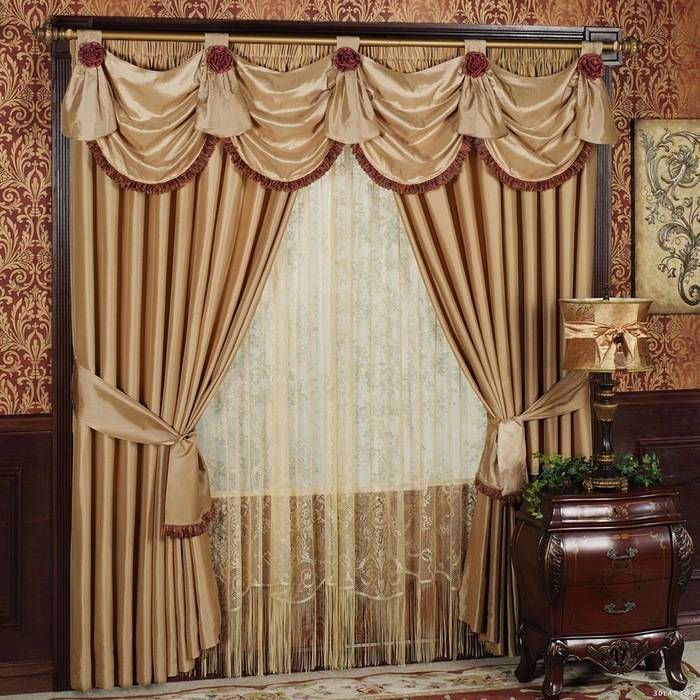 такое массивное, богатое оконное убранство способно «утяжелить» пространство, сделать его праздничным, поэтому подойдет не для любого интерьера.