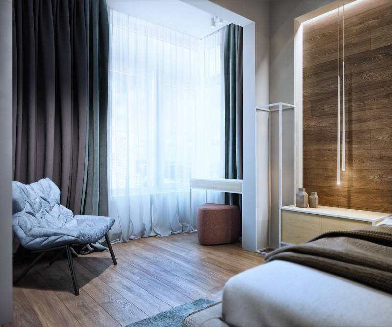 Штора здесь играет большую роль, поэтому важно, чтобы она подходила по дизайну, создавала уют и при этом не терялась на фоне комнаты
