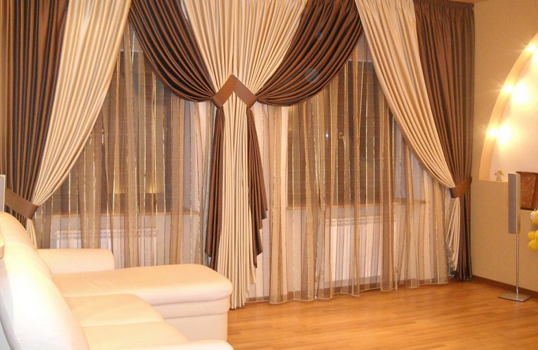 Украшение зала тканевыми занавесами обрело популярность ещё в эпоху ренесанса и пришло к нам сквозь века. На данный момент при комнатном оформлении можно показать фантазию, воплотив в реальность довольно смелые желания.