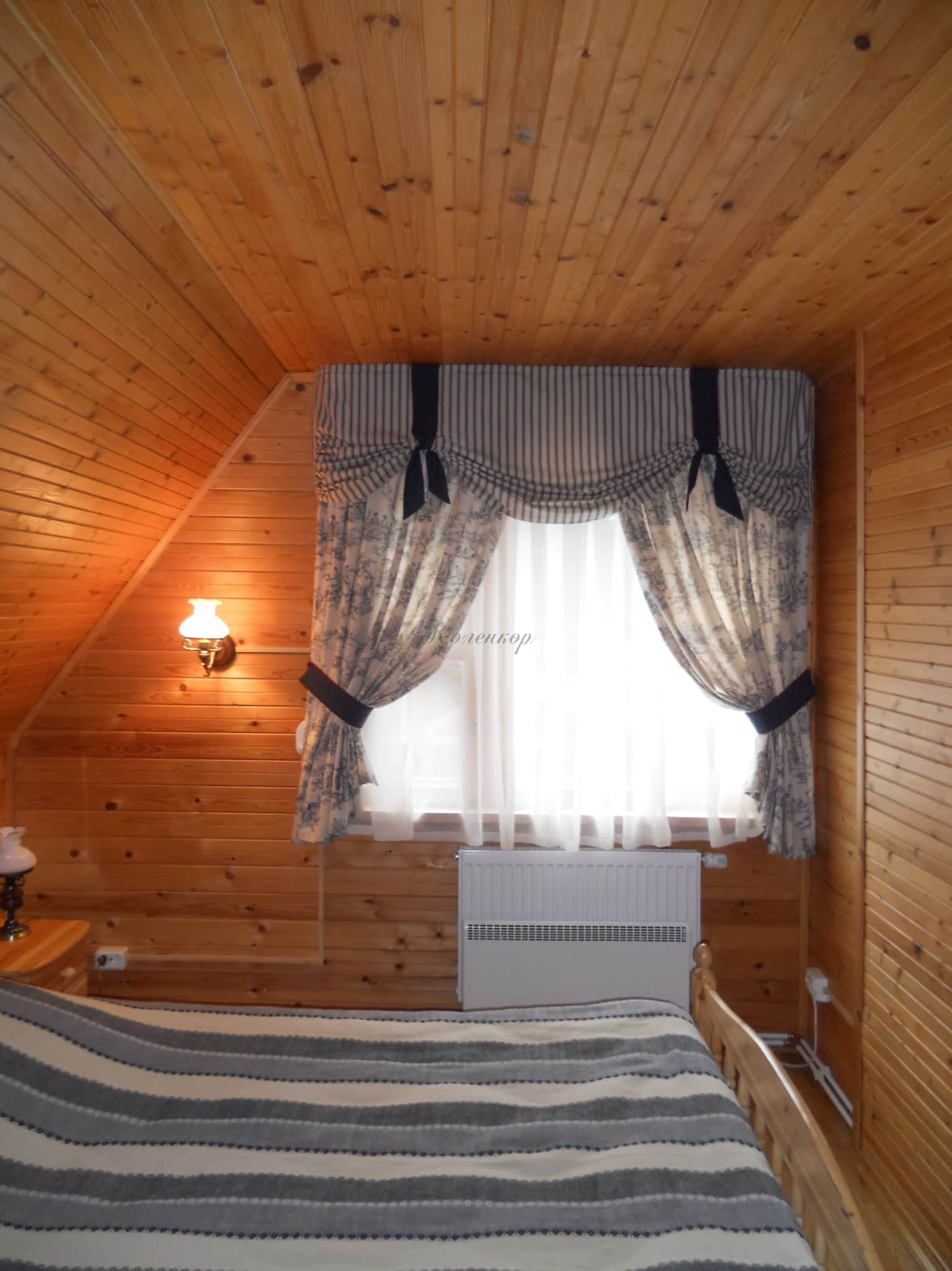 - Декоративный элемент из ткани — применяется как правило для украшения части сверху проёма окна, фиксируется в горизонтальном положении над ним.