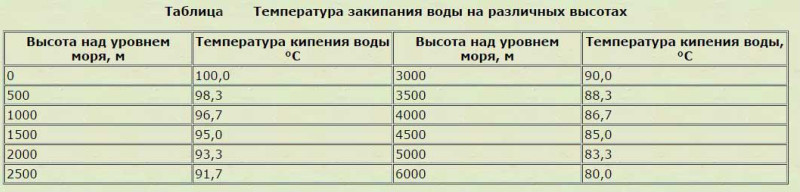 температура кипения воды на разных высотах
