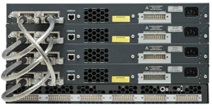 Несколько коммутаторов, подключенных с помощью специальных кабелей для стекирования, могут быть объединены в один логический коммутатор. Все коммутаторы в этом логическом коммутаторе используют одну и ту же информацию о конфигурации и маршрутизации. При добавлении и удалении отдельного коммутатора производительность логического коммутатора не пострадает.