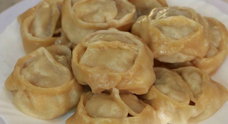 – значительно крупнее пельменей, они сворачиваются немного другим способом и готовятся на пару с использованием мантоварки или пароварки. Подаются сразу после отваривания либо слегка обжаренными. В раскатанное тесто заворачивают начинку: мясо с луком, картофелем либо тыквой.