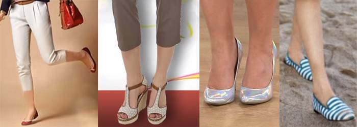 Если вы сомневаетесь в полноте ваших ног, тогда приобретайте обувь на высоком каблуке или танкетке. С таким сочетанием ваши ноги станут стройнее и длиннее.