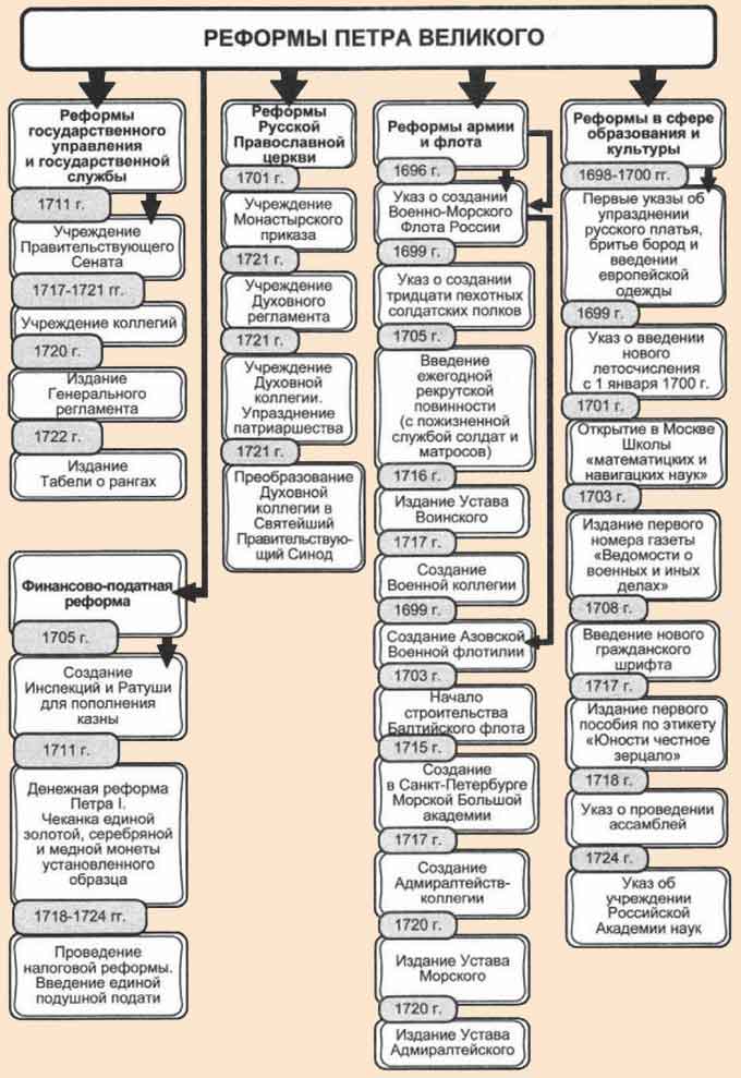 Таблица реформ Петра Великого