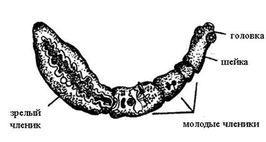- На теле расположены, так называемые, членики, на которых развиваются яйца паразита. Длина самых зрелых члеников 1,8 см.