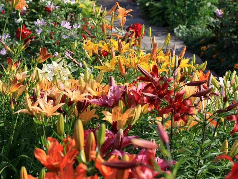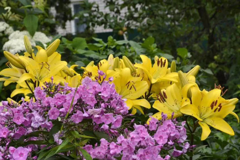 Высота подавляющего большинства лилий находится в диапазоне 1-1,2 м, поэтому они высаживаются не на переднем плане, а в глубине композиции. Для тех, кто сомневается в том, с какими цветами сочетается лилия на клумбе, полезно воспользоваться следующими подсказками: